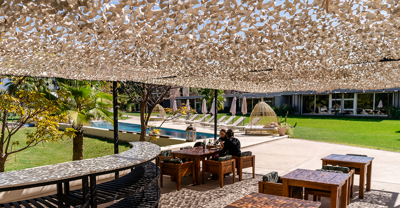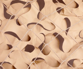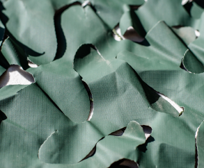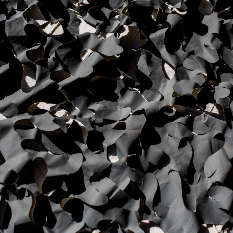 Es paradójico, un producto que fue inventado para camuflar a los ejércitos en tiempos de guerra, hoy es un elemento de vanguardia en el mundo del diseño, creando sombras que inspiran paz y tranquilidad.